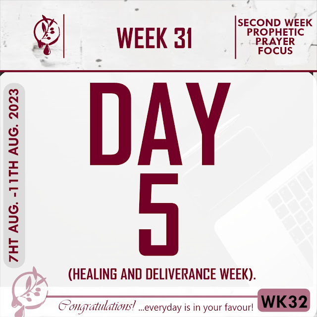 FRESH OIL MONDAY 7TH AUGUST-11TH AUGUST 2023. PROPHETIC PRAYER FOCUS: I AM IN MY HEALING AND DELIVERANCE WEEK! I DECREE, MY HEALING SPRING FORTH SPEEDILY NOW. I DECLARE, I HAVE MY HEALING, HEALTH, DELIVERANCE AND WHOLENESS. (IT’S MY SEASON OF ALL-ROUND POSSIBILITY AND PRODUCTIVITY).