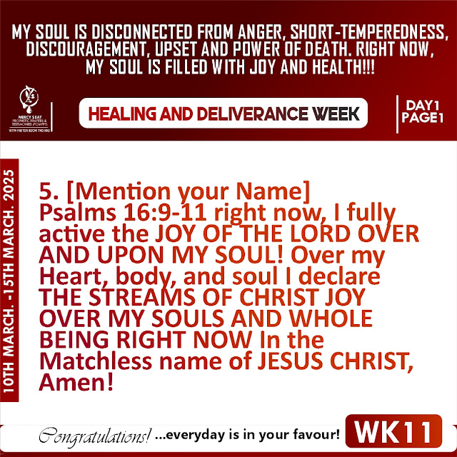 MERCY SEAT PRAYERS 10TH MARCH 2025 14TH MARCH 2025. PROPHETIC PRAYER FOCUS: I AM IN MY HEALING AND DELIVERANCE WEEK ALREADY!!! DIVINE EMERGENCY, DIVINE INTERVENTION IS DECLARED RIGHT NOW OVER MY HEALTH. I AM HEALED, I AM DELIVERED!!! (IT’S MY SEASON OF GREATER POSSIBILITY, GREATER PRODUCTIVITY AND GREATER PROSPERITY).